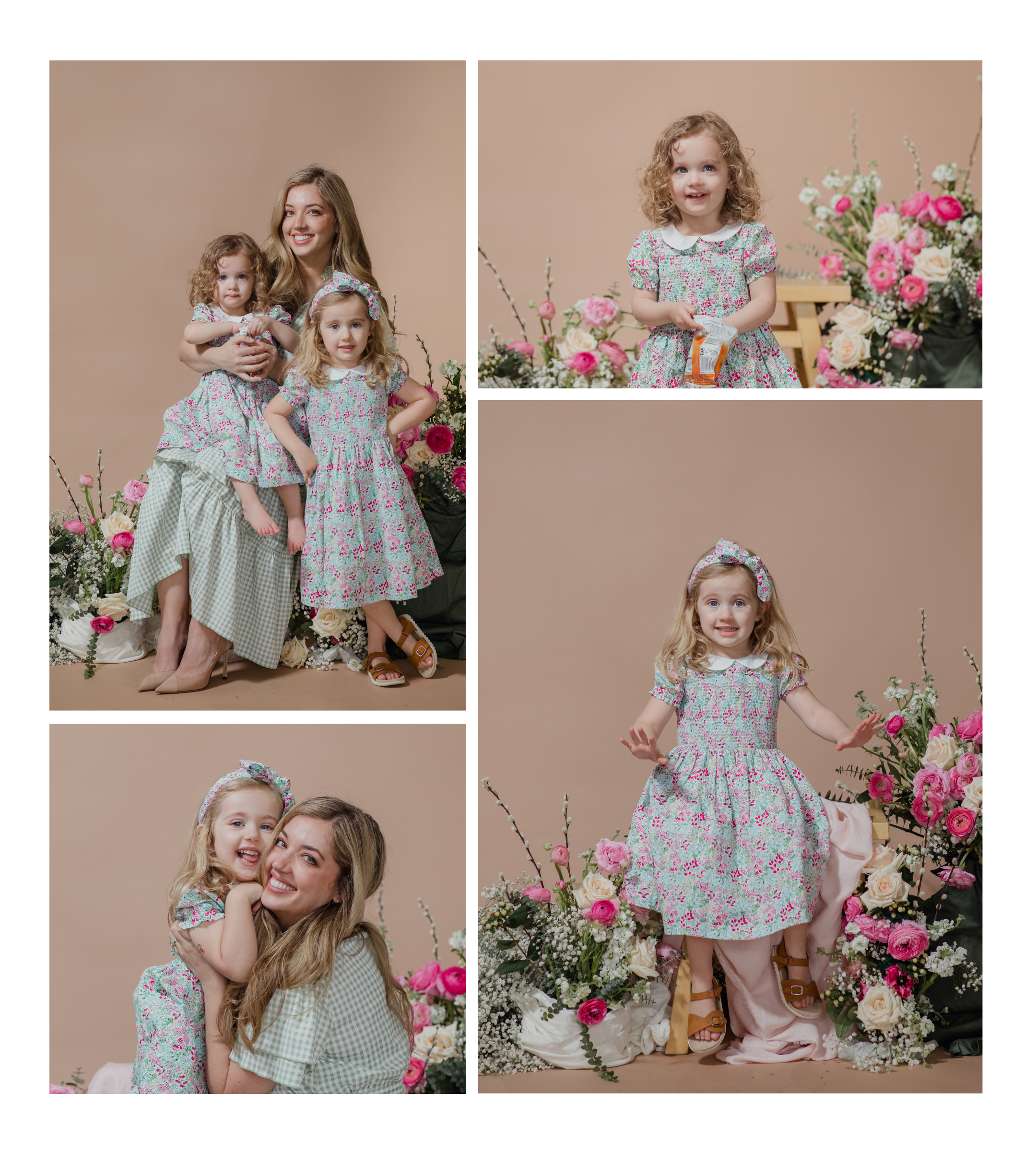 The vision for this set up has been slowly building in my mind for a while, and I’m so excited to offer something a different this year for Mother’s Day. The studio scene is springy and sophisticated, full of florals on a neutral backdrop.
